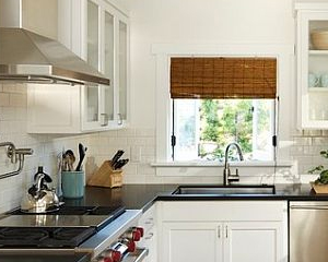 This shape uses two walls of the kitchen for the three points of the work triangle. Often, the fridge is at one end of the long leg of the "L", the sink is towards the center of the same wall, and the stove is perpendicular, on the short leg of the "L." In contrast to the U shape kitchen.